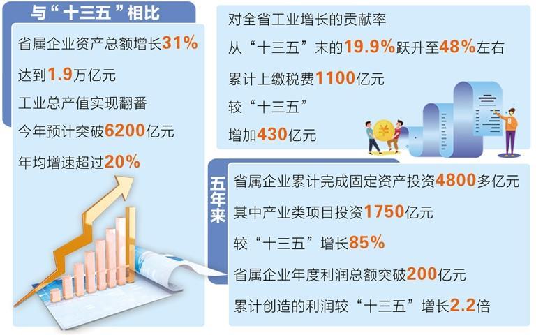 記者從省政府新聞辦12月2日召開的“決勝收官‘十四五’ 爭先進(jìn)位話發(fā)展”主題系列新聞發(fā)布會上獲悉,省國資國企系統(tǒng)圓滿完成“十四五”規(guī)劃目標(biāo)任務(wù)。與“十三五”相比,省屬企業(yè)資產(chǎn)總額增長31%、達(dá)到1.9萬億元,工業(yè)總產(chǎn)值實現(xiàn)翻番,今年預(yù)計突破6200億元,年均增速超過20%,對全省工業(yè)增長的貢獻(xiàn)率,從“十三五”末的19.9%躍升至48%左右,累計上繳稅費1100億元,較“十三五”增加430億元。